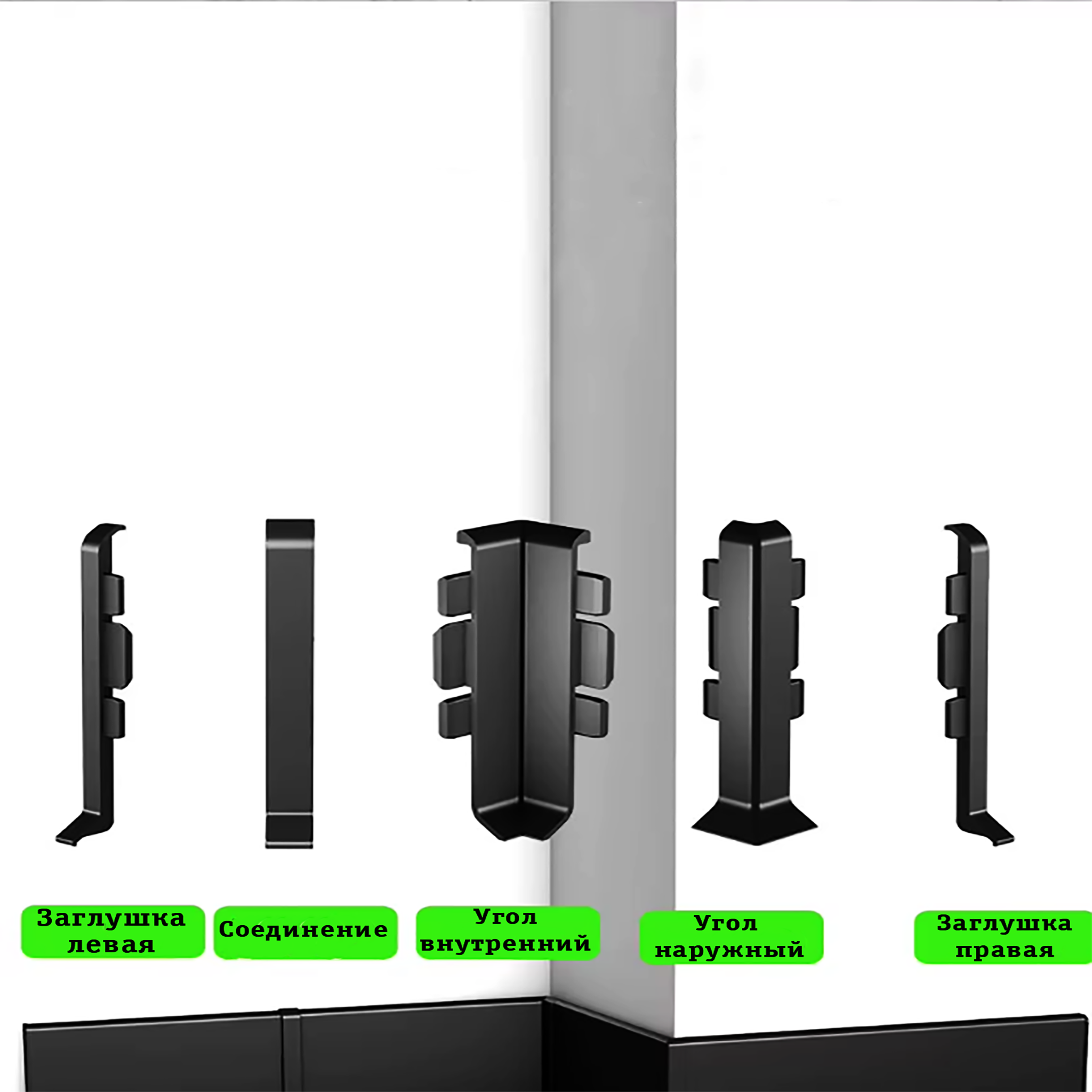 Черный матовый цвет соединителя придает интерьеру изысканность и стиль. Он гармонично сочетается с различными оттенками напольных покрытий и создает эффектный контраст, подчеркивая красоту алюминиевого профиля.