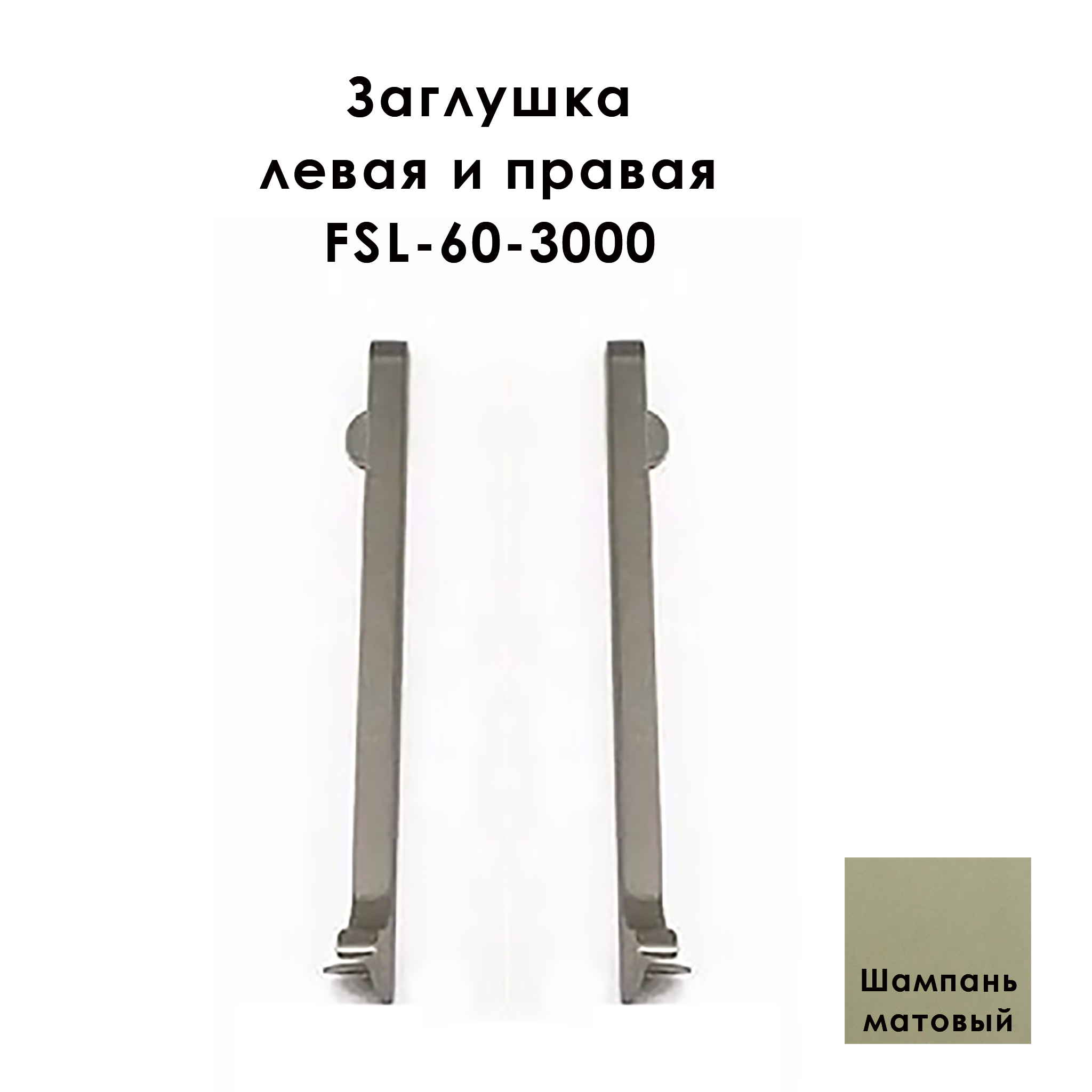Заглушка левая и правая для напольного плинтуса L-образного, высота 60 мм, Шампань матовый