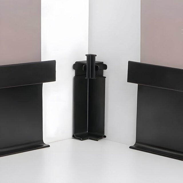 Установка скрытого плинтуса с использованием наших внутренних углов JD22-60 максимально проста и быстра. Они идеально подходят для создания ровных и аккуратных линий по периметру комнаты, что значительно облегчает процесс монтажа и повышает его качество. Внутренний угол также позволяет осуществлять незаметный переход между стенами в углах помещений, что является важным элементом дизайна и функциональности.