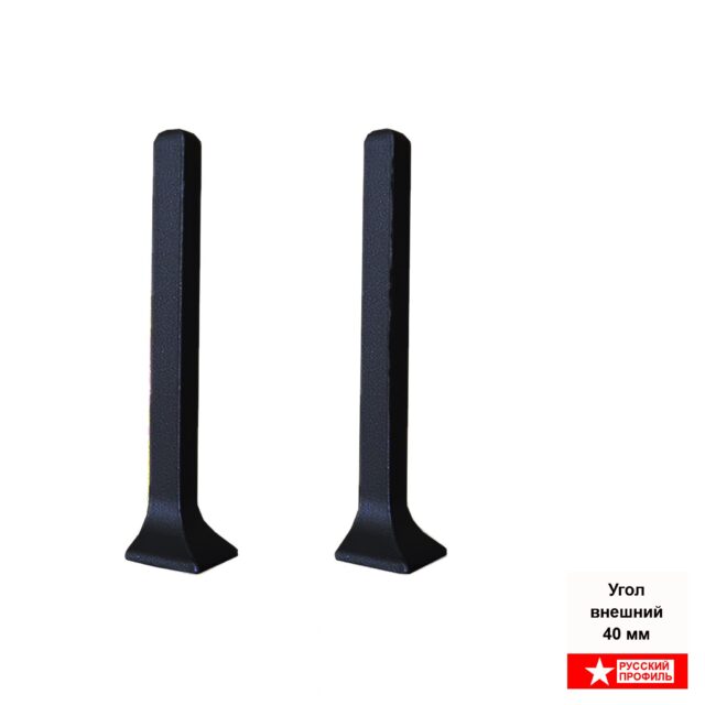 Высота угла наружного составляет 40 мм — это оптимальный размер для большинства напольных покрытий. Черный матовый цвет угла гармонично сочетается с различными оттенками и стилями интерьера. Он создает эффектный контраст с цветом пола и стен, придавая интерьеру современный и стильный вид.