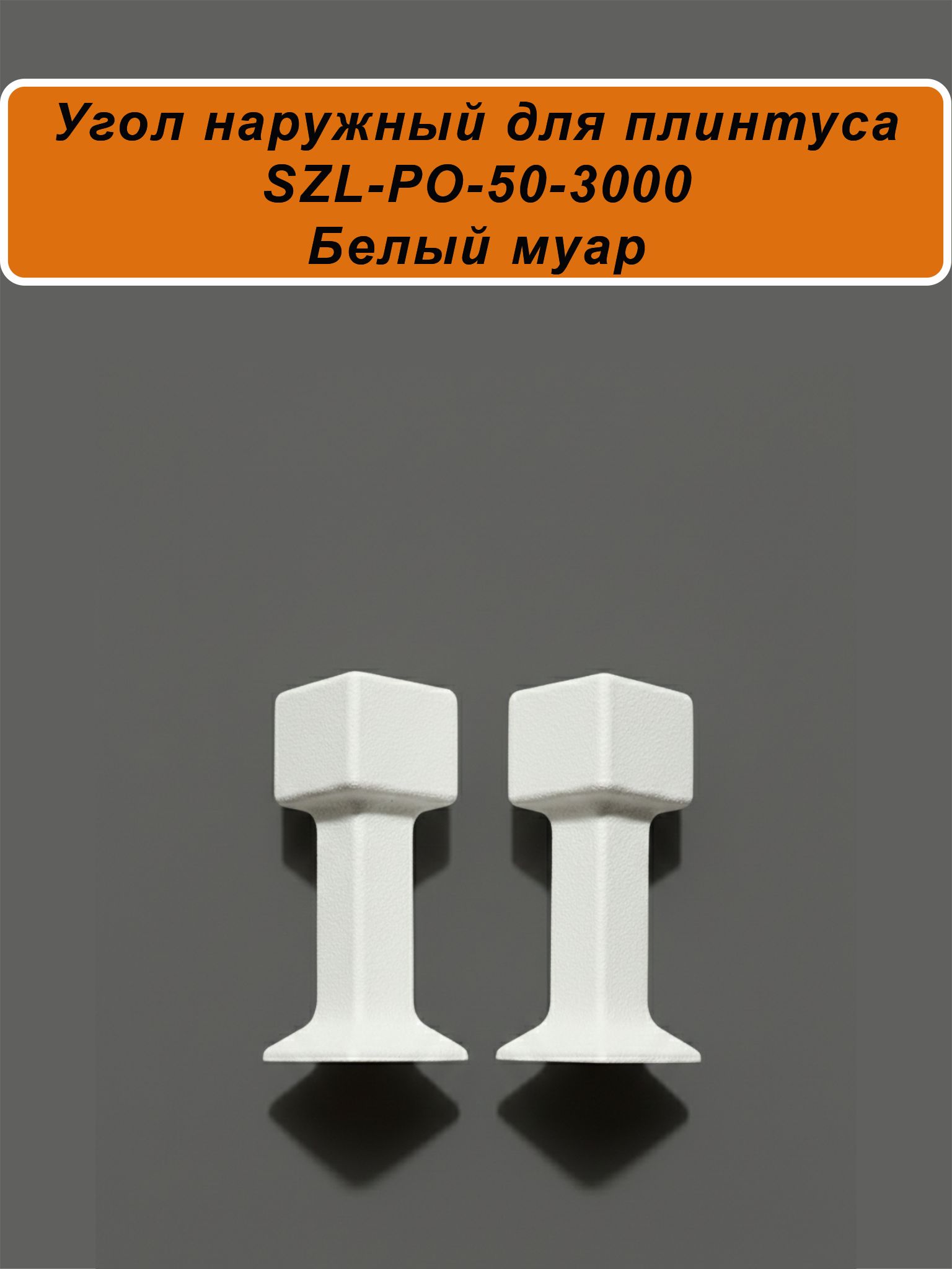 Угол наружный для алюминиевого плинтуса SZL-50-3000, Белый муар, 2 шт