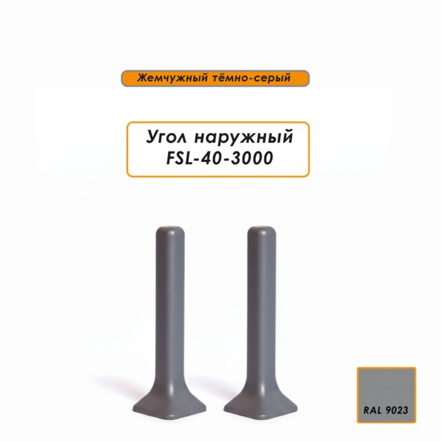 Угол наружный для L- образного плинтуса, высота 40 мм, Жемчужный тёмно-серый, 4 шт