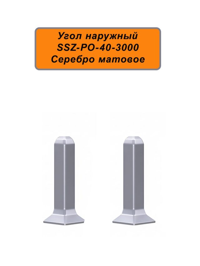 Угол наружный, внешний для алюминиевого плинтуса SSZ-40-3000, Серебро матовое, 2 шт