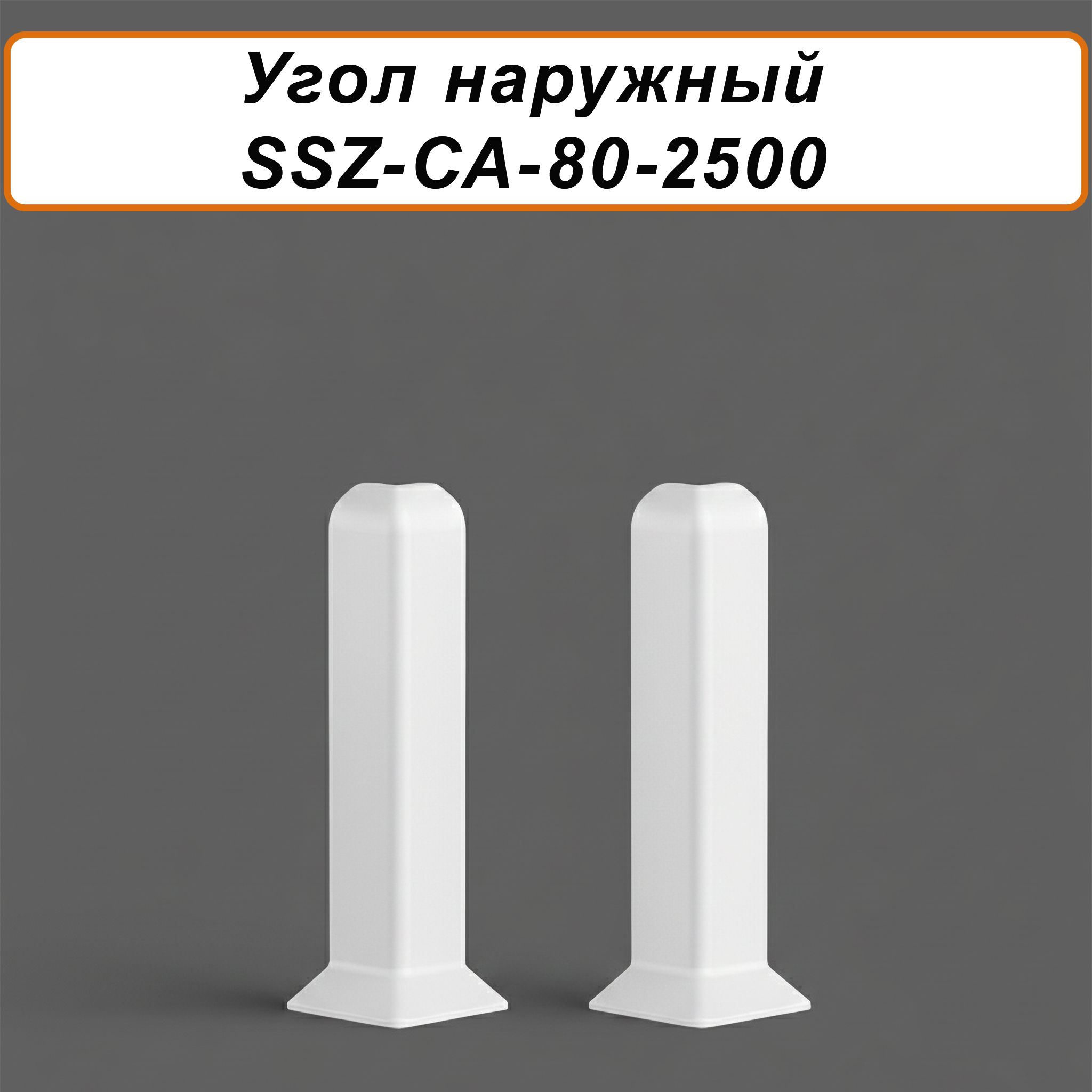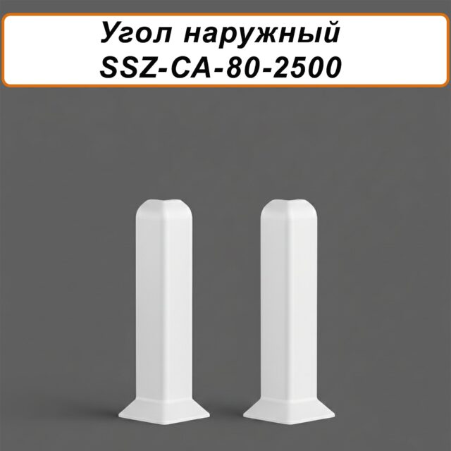 Угол наружный, внешний для алюминиевого плинтуса SSZ-80-2500,Белый матовый, 2 шт
