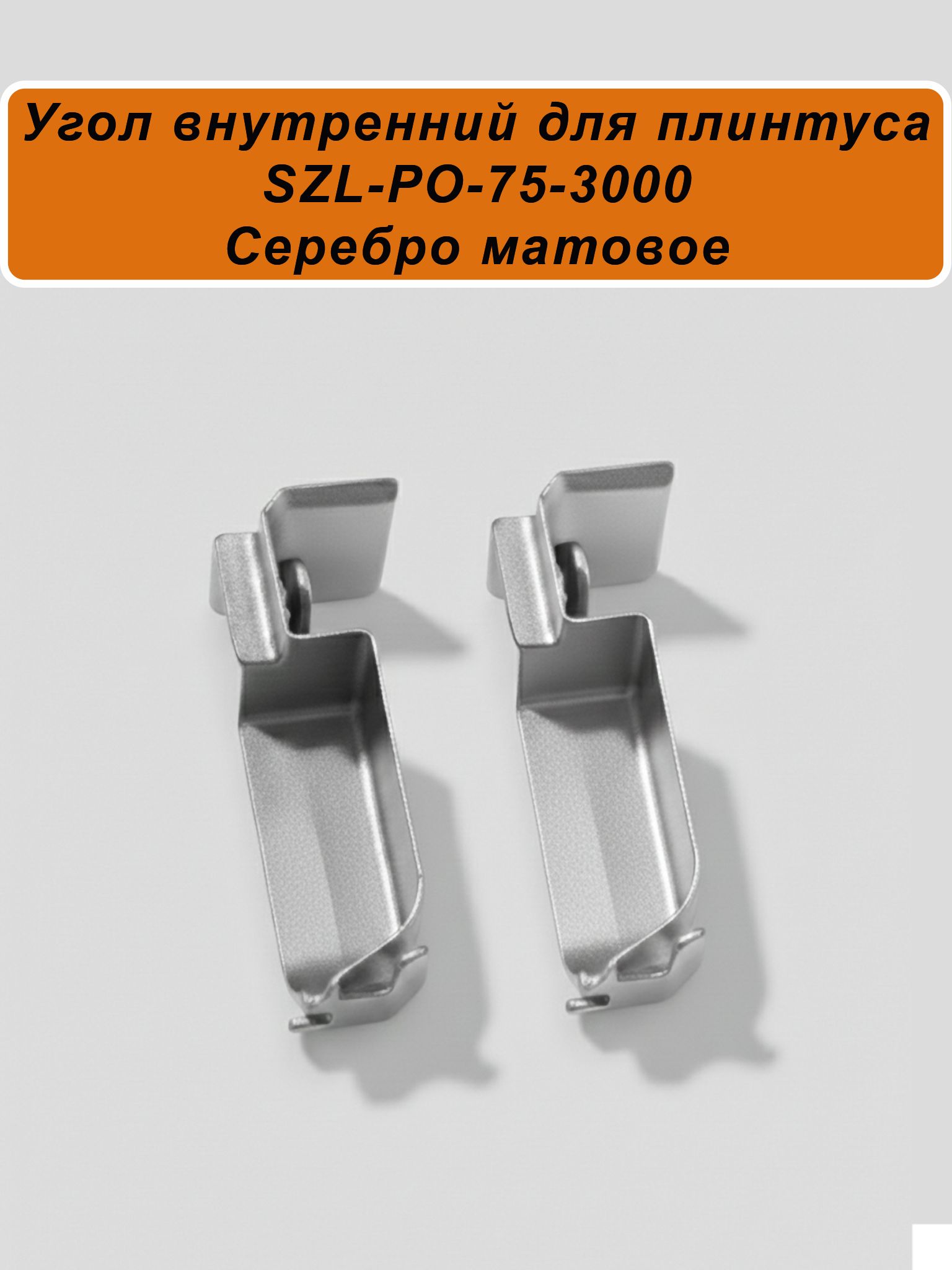 Угол внутренний для алюминиевого плинтуса SZL-75-3000, Серебро матовое, 2 шт