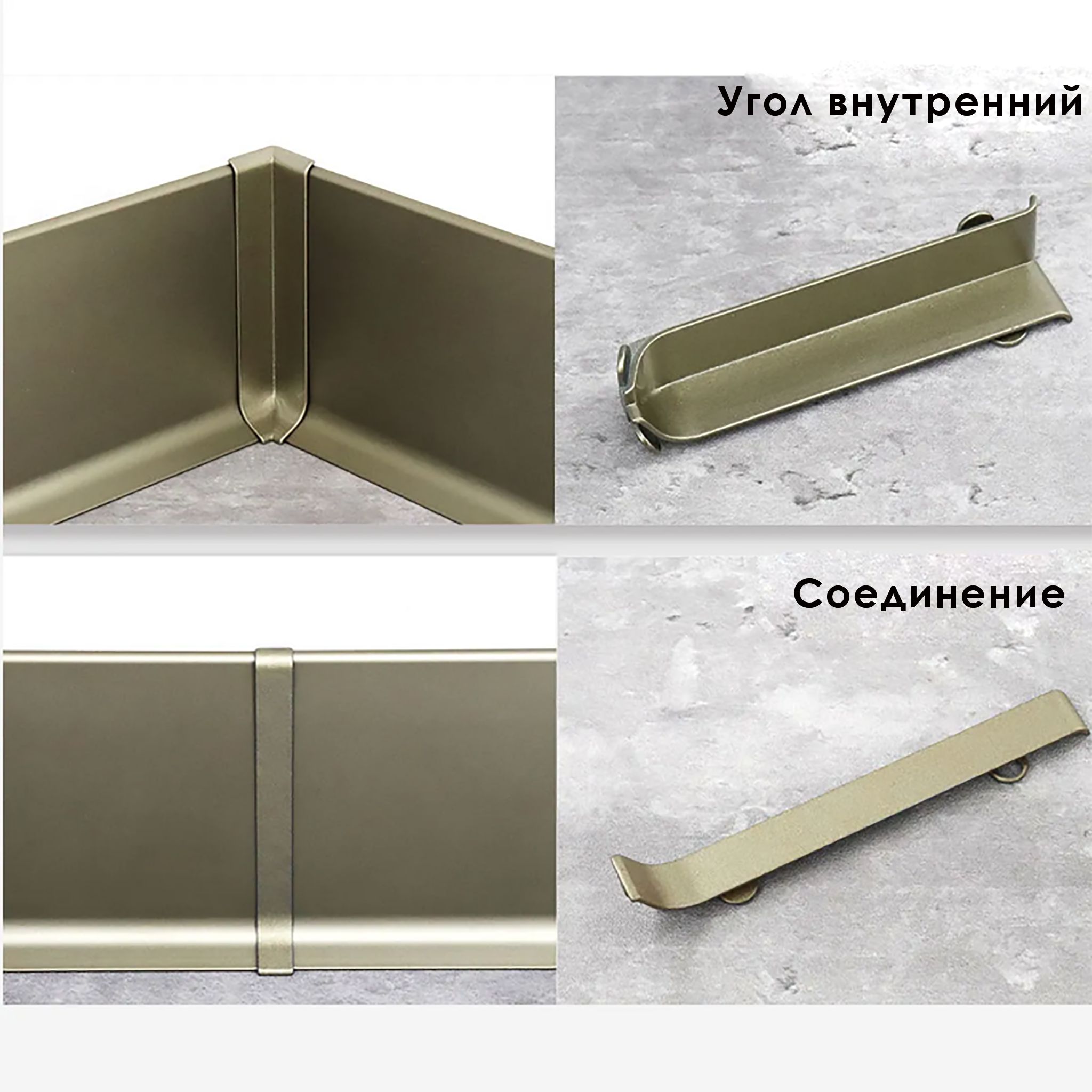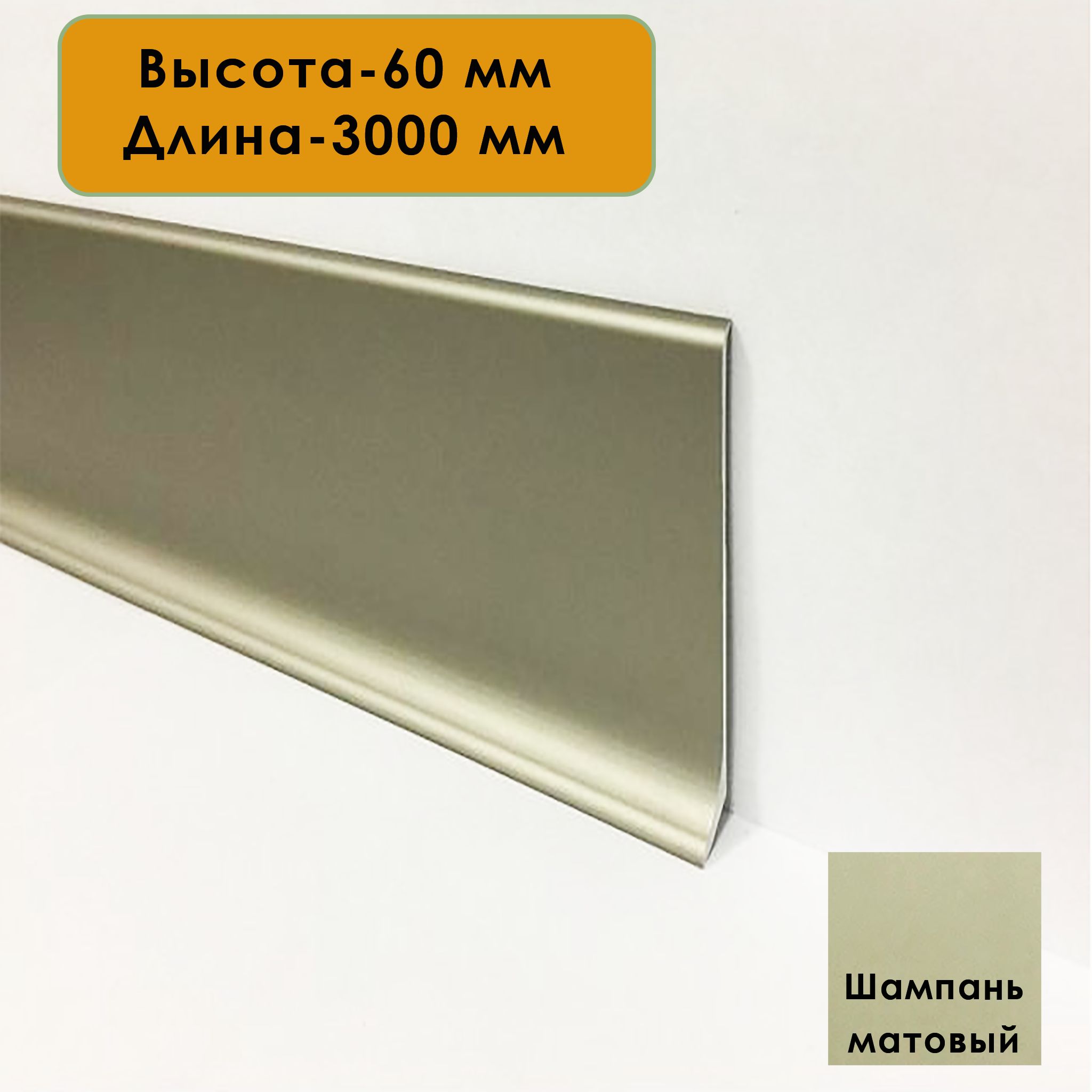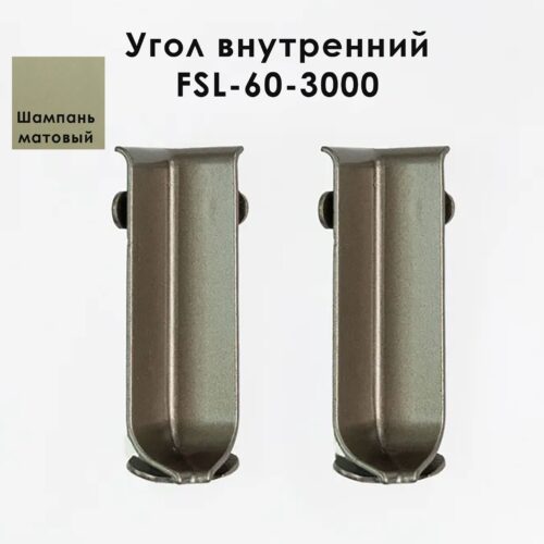 Угол внутренний для напольного плинтуса L- образного, высота 60 мм, Шампань матовый, 2 шт