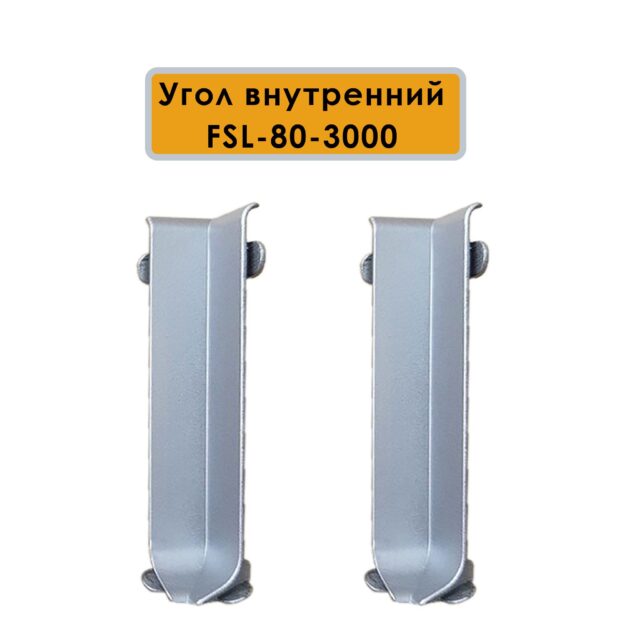Угол внутренний для плинтуса L- образного, высота 80 мм, Серебро матовый, 2 шт