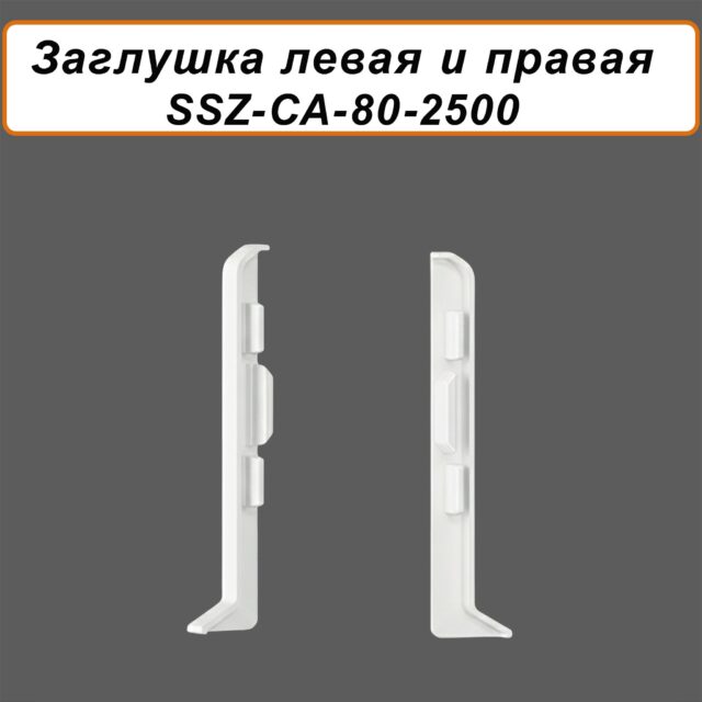 Заглушка левая и правая для алюминиевого плинтуса SSZ-80-2500,Белый матовый, 2 шт