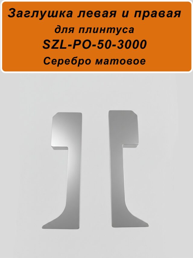 Заглушка левая и правая для алюминиевого плинтуса SZL-50-3000, Серебро матовое, 2 шт