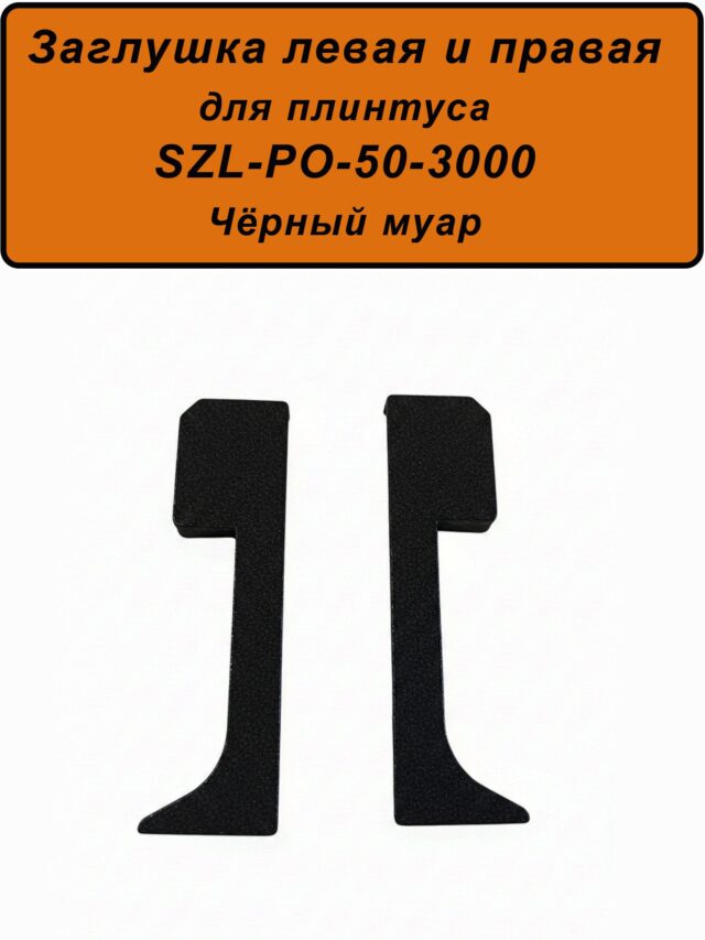 Заглушка левая и правая для алюминиевого плинтуса SZL-50-3000, Чёрный муар, 2 шт