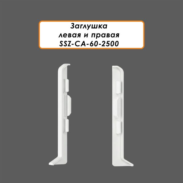 Заглушка левая и правая для алюминиевого плинтуса SSZ-CA-60-2500, Белый матовый, 2 шт