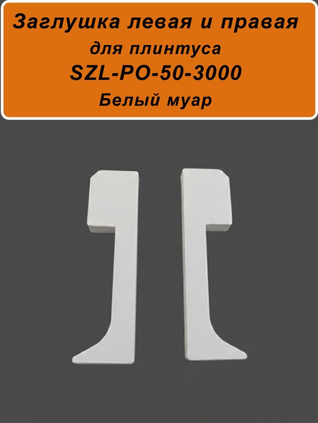Заглушка левая и правая для алюминиевого плинтуса SZL-50-3000, Белый муар, 2 шт