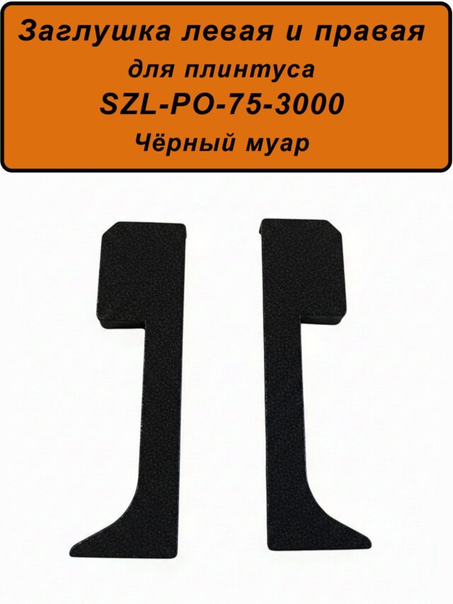 Заглушка левая и правая для алюминиевого плинтуса SZL-75-3000, Чёрный муар, 2 шт