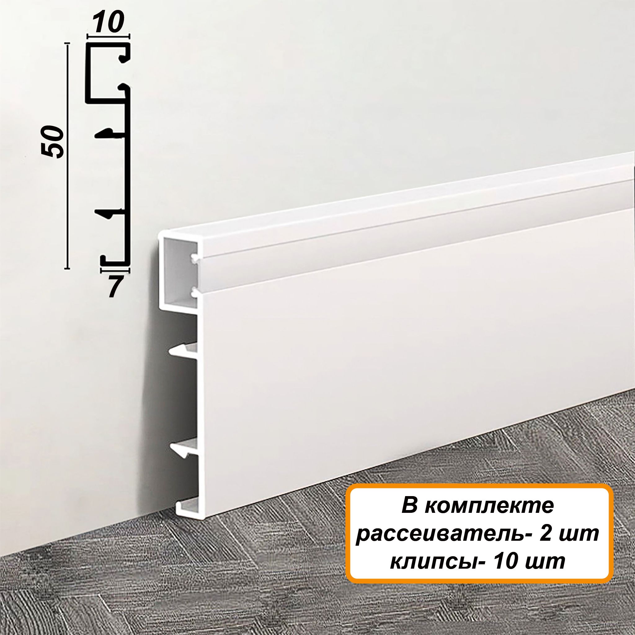 | Сайт название | Плинтус алюминиевый напольный LED-50-2500 под подсветку, накладной, Белый матовый, 2 шт |