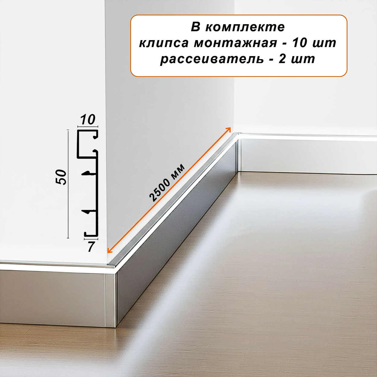 | Сайт название | Плинтус алюминиевый напольный LED-50-2500 под подсветку, накладной, Серебро матовое, 2 шт |