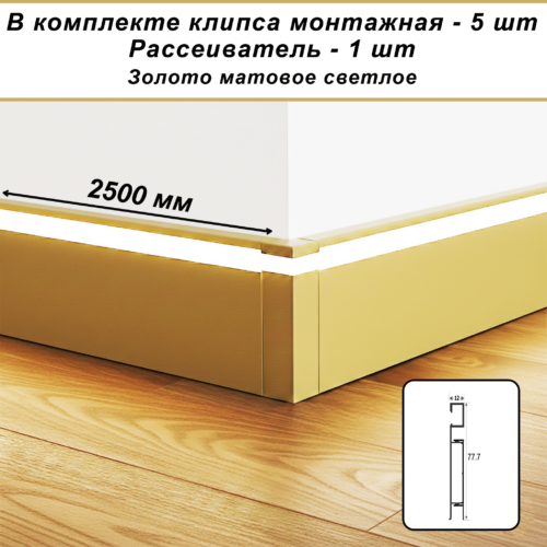 Плинтус алюминиевый напольный LED-78-80-2500 под подсветку, накладной, Золото матовое светлое, 1 шт