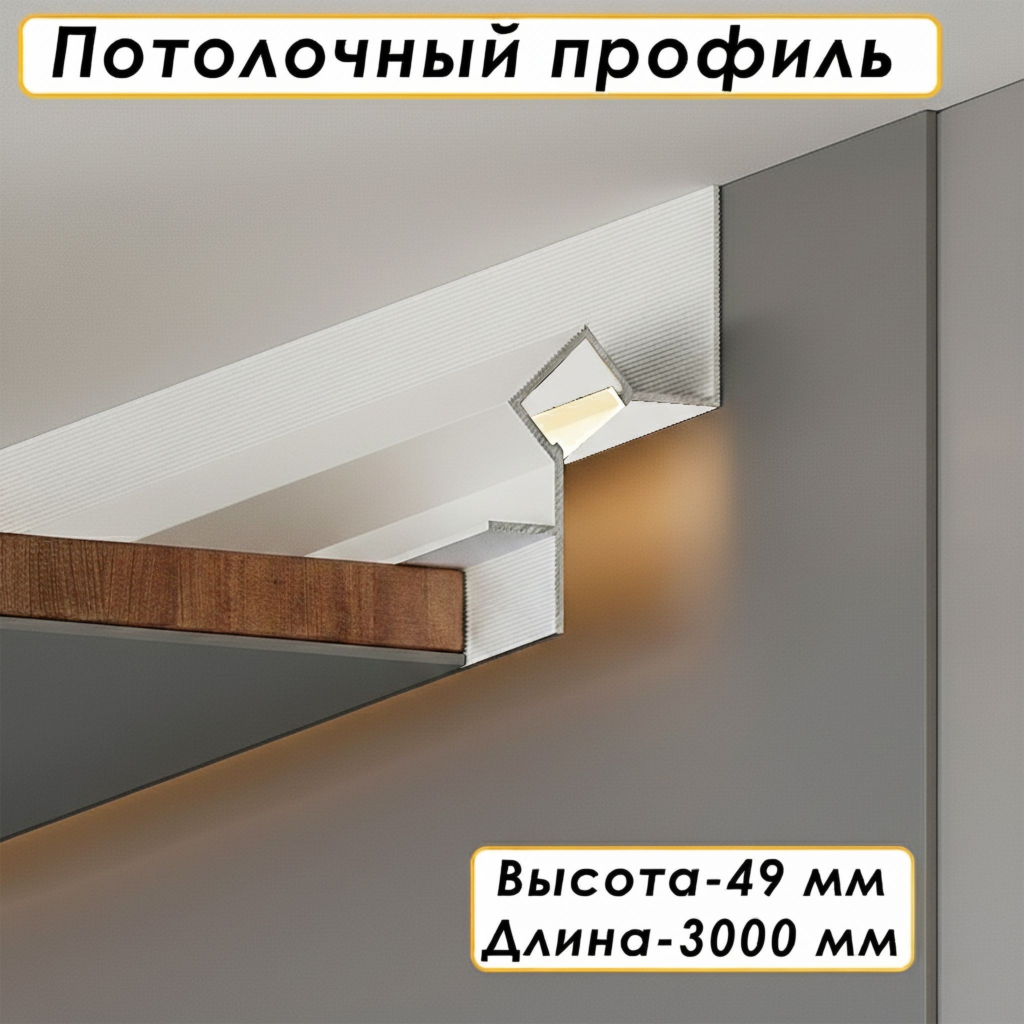 Алюминиевый потолочный плинтус под подсветку, высота 49 мм, Белый полуглянец, 1 шт