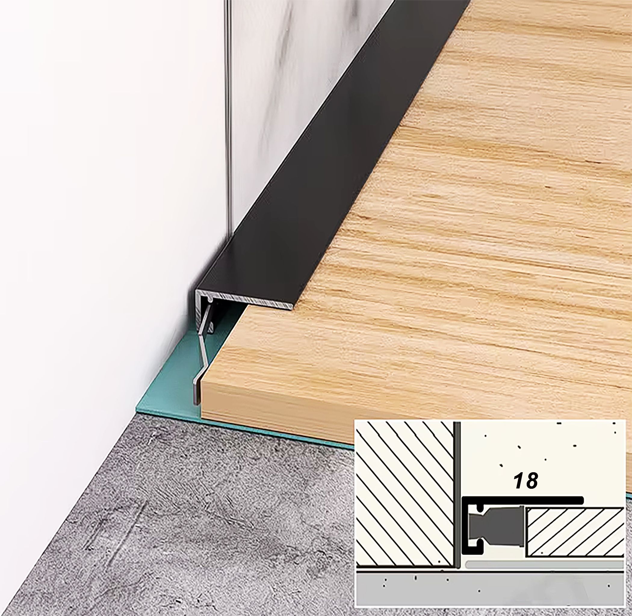 Микро плинтус щелевой для пола, 18 х 2400 мм, Черный матовый,1 шт