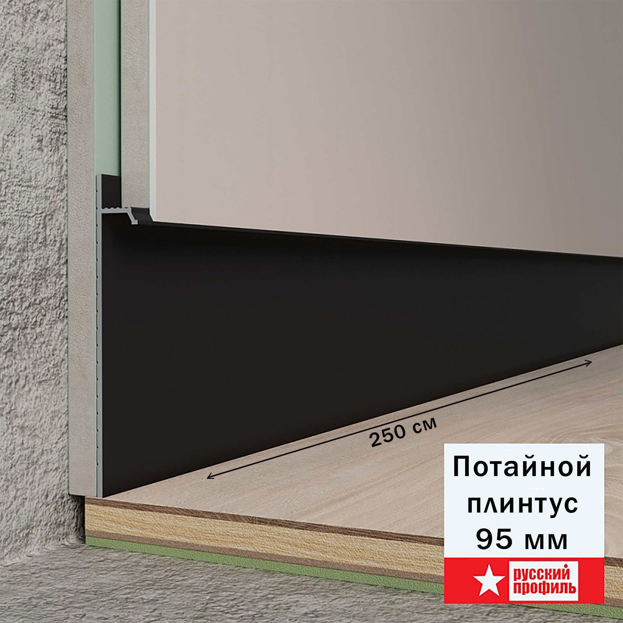 Теневой плинтус скрытого монтажа высотой 95 мм и длиной 250 см применяется для любого типа стен (штукатурка, гипсокартон, гкл) используется с любой финишной отделкой стен.