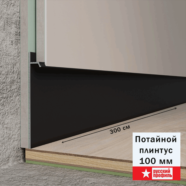 | Плинтус напольный теневой без подсветки, 100 X 80 X 3000 мм, Чёрный матовый , 1 шт ( HIDDEN-FS100X80-3000-BLACK) | 10 |