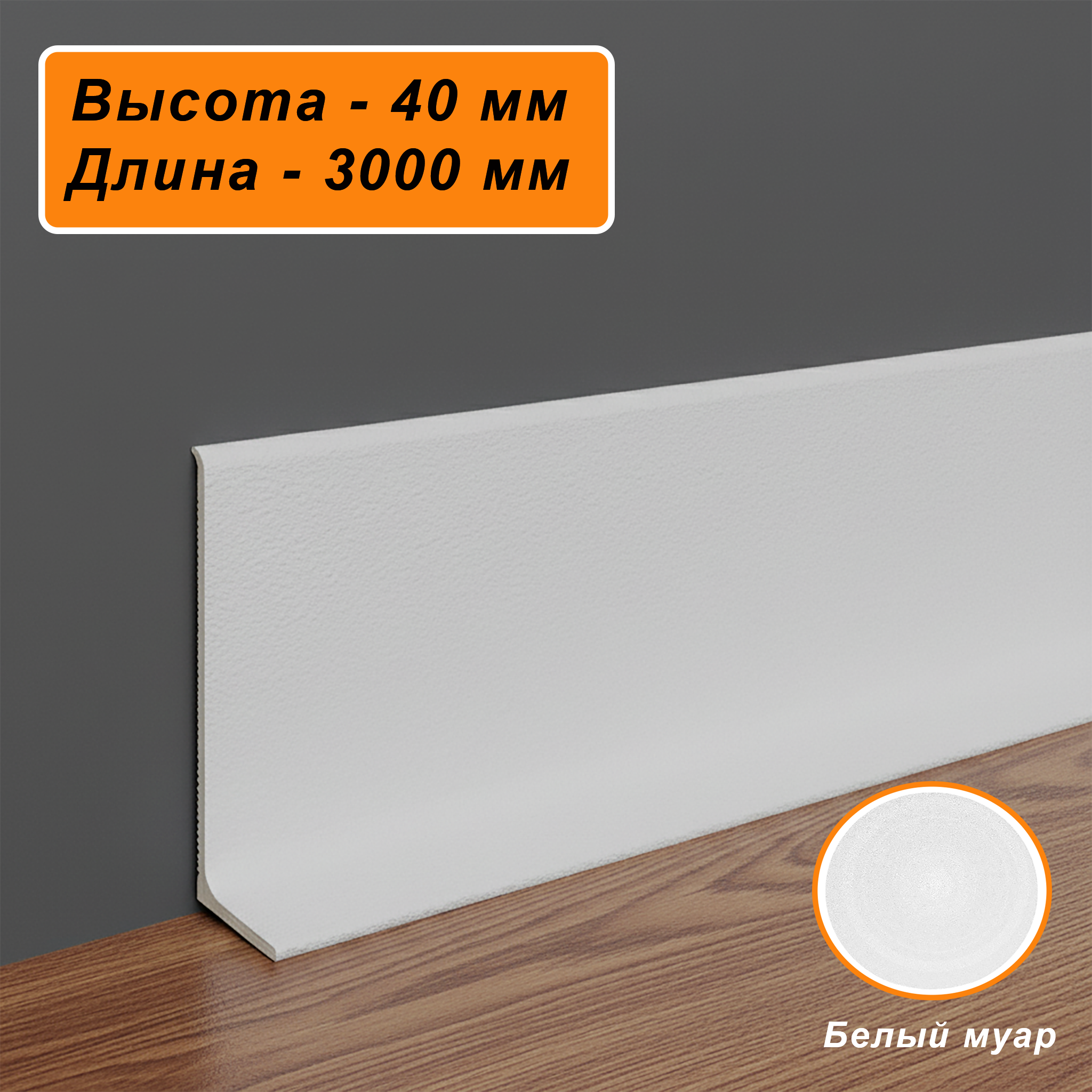 Плинтус напольный алюминиевый L-образный, высота 40 мм, длина 300 см, Белый муар, 1 шт