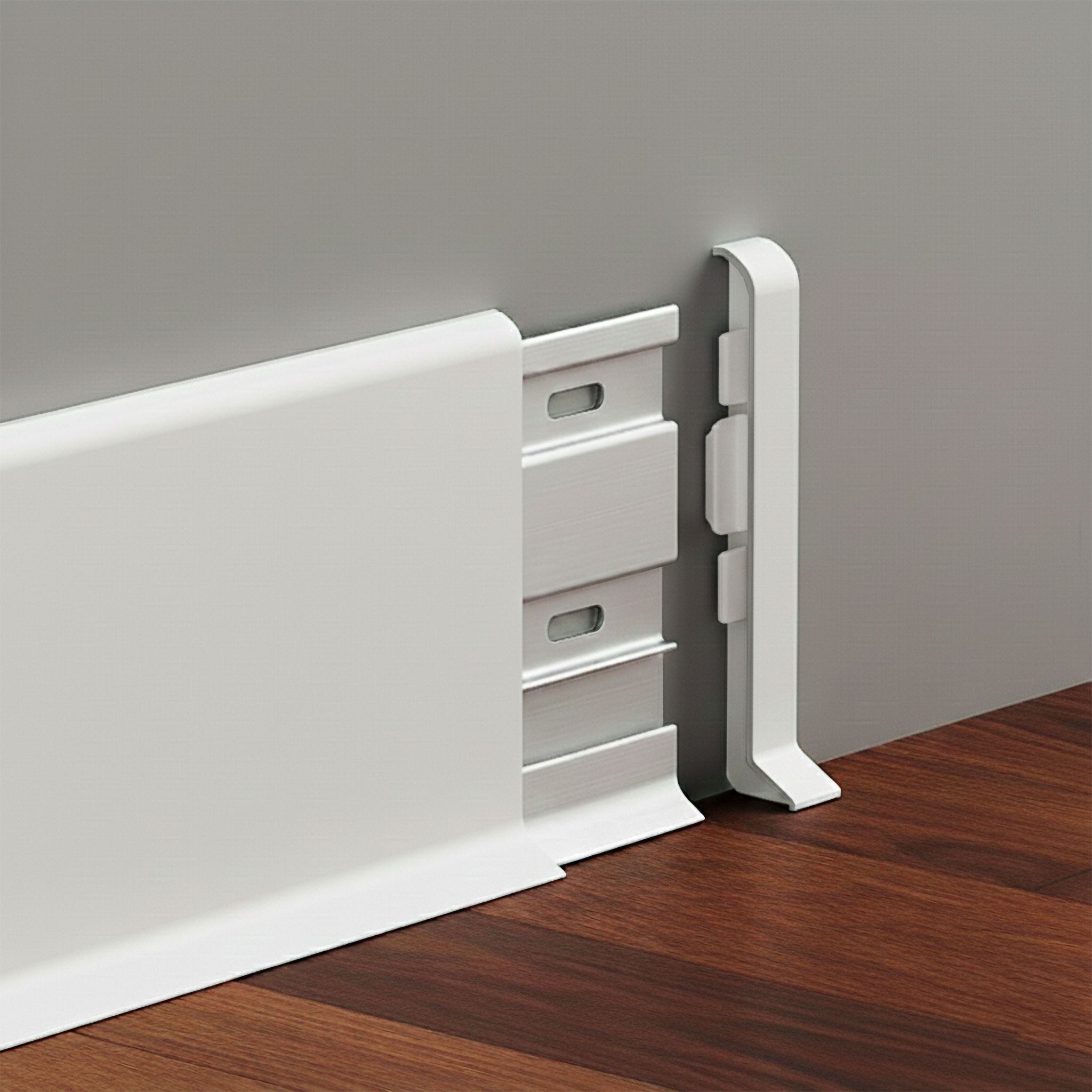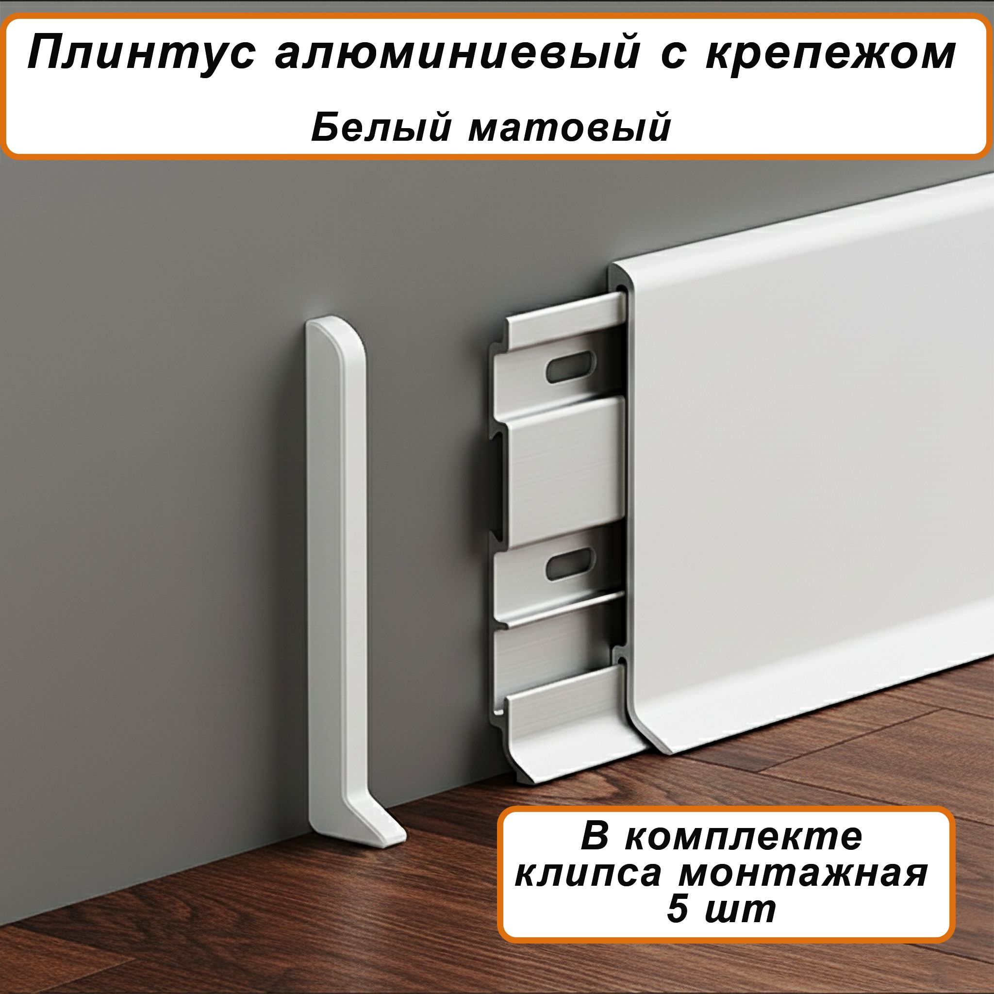Плинтус напольный алюминиевый SSZ-80-2500, с крепежом, Белый матовый, 1 шт