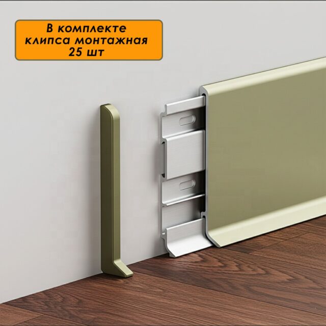 Плинтус напольный алюминиевый SSZ-80-2500, с крепежом, Шампань матовый, 5 шт