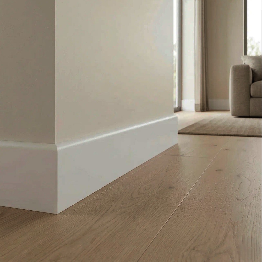 Плинтус напольный из дюрополимера, 80 X 2200 мм, ударопрочный и влагостойкий, Белый матовый 9003, 1 шт