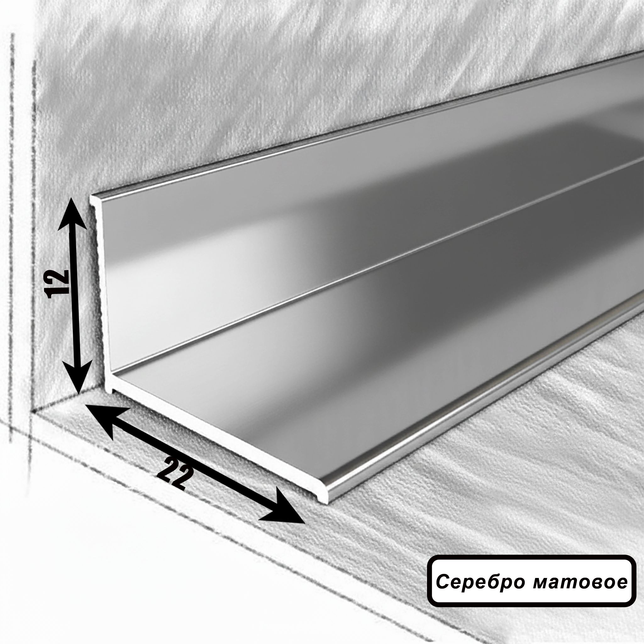 Плинтус напольный, угол внутренний, 22 х 12 мм, 270 см, Серебро матовое — идеальное решение для вашего дома или офиса! Этот стильный и функциональный элемент интерьера от бренда Русский Профиль гармонично вписывается в любое пространство благодаря своему утонченному дизайну и элегантному серебристо матовому покрытию.