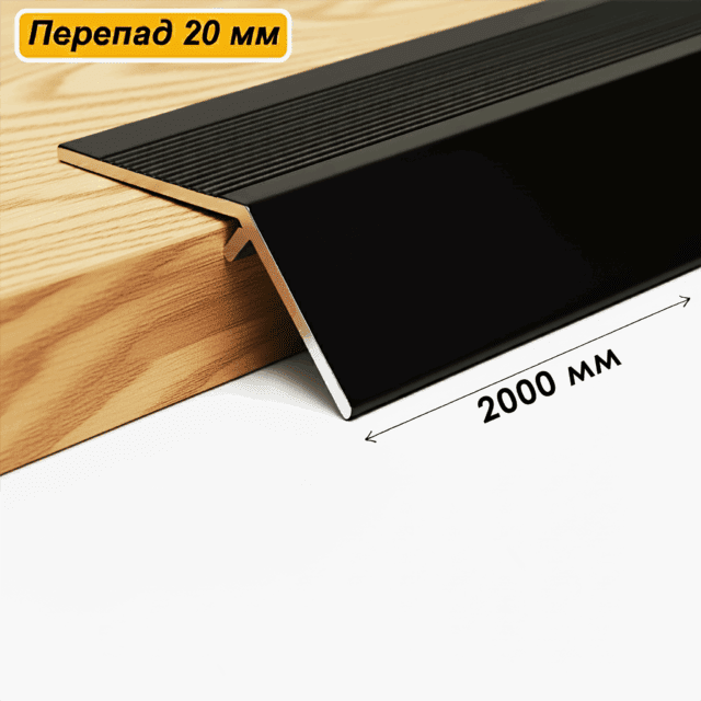 Порог разноуровневый, 60 x 2000 мм, перепад 20 мм, Чёрный матовый, 1 шт