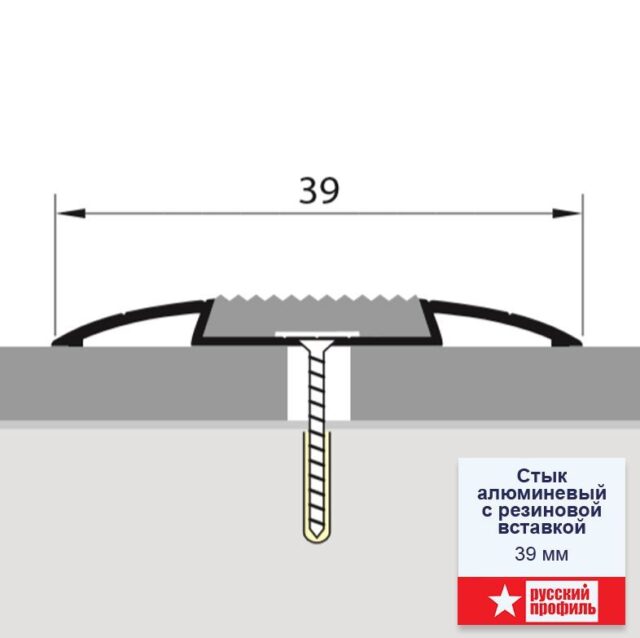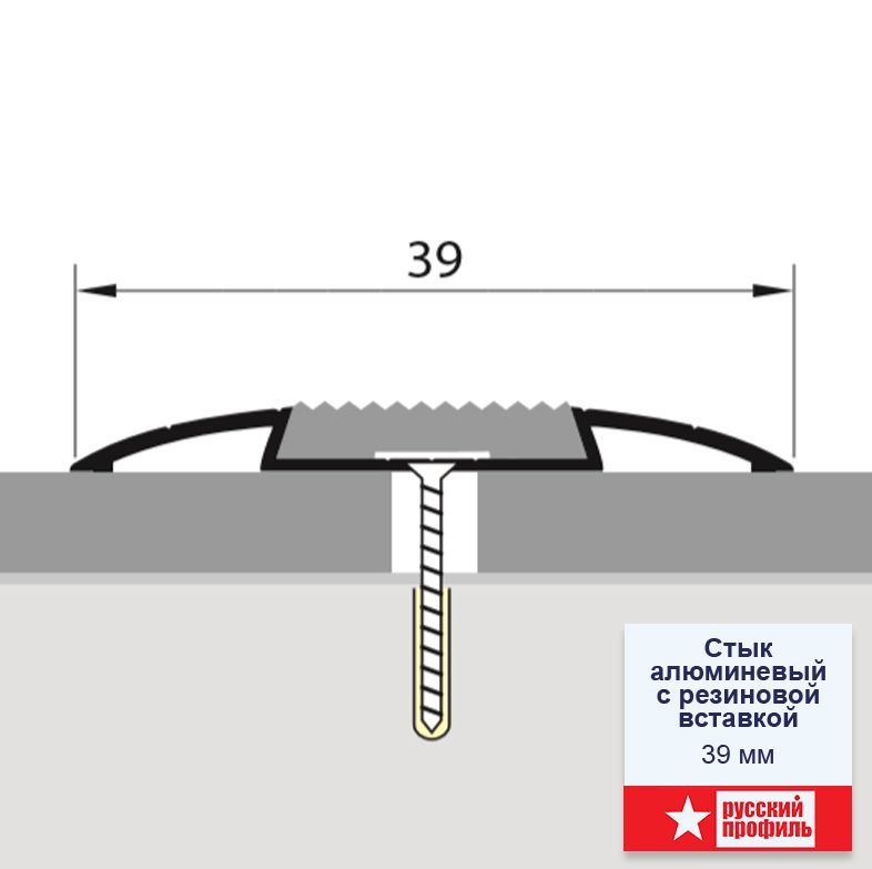 Алюминиевый порожек 39 мм с чёрной резиновой вставкой предназначен для декоративного закрытия компенсационных напольных швов и стыков напольных покрытий и выполняет антискользящую функцию Safety Step.
