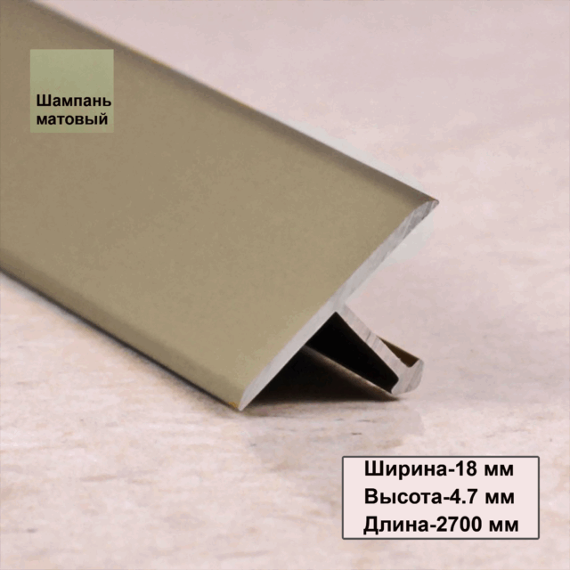 Порожек Т - профиль 18 х 2700,короткая ножка ,Шампань матовый, для напольных покрытий, 1 шт