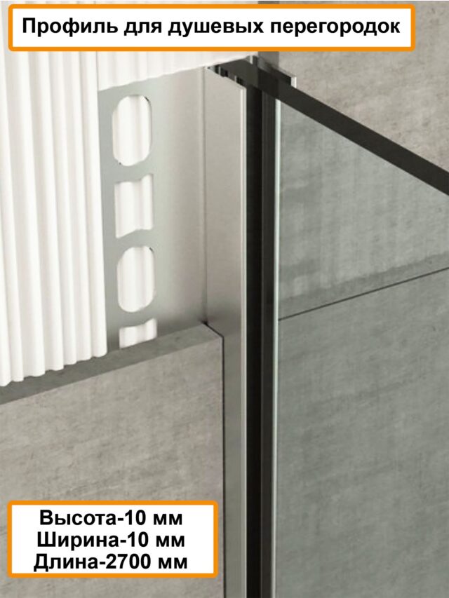 Профиль для душевых перегородок, 10 X 10, алюминиевый, Серебро матовое, 270 см, 1 шт